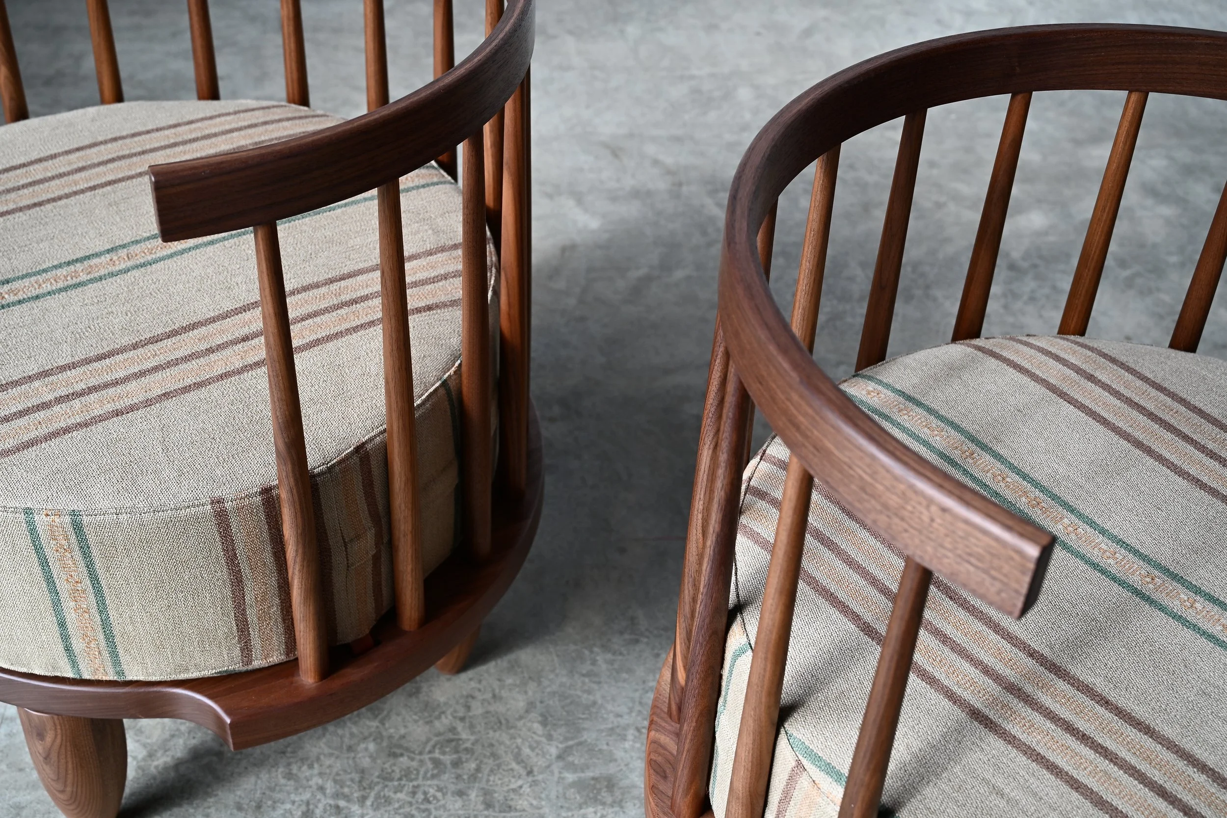 A radius of spindles revolves around a deep well of plush upholstery. Available with or without back pillows, COM is available by request.