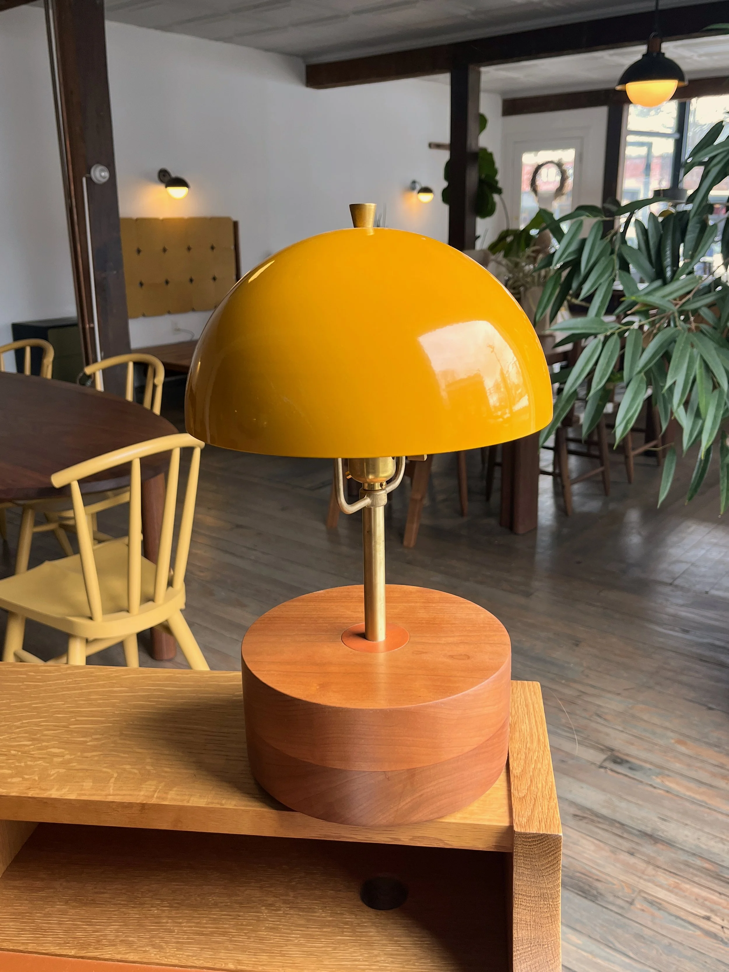 Dimensions: 17”OH, 8”Dia x 4”H Base, 9” Dia Shade in Marigold